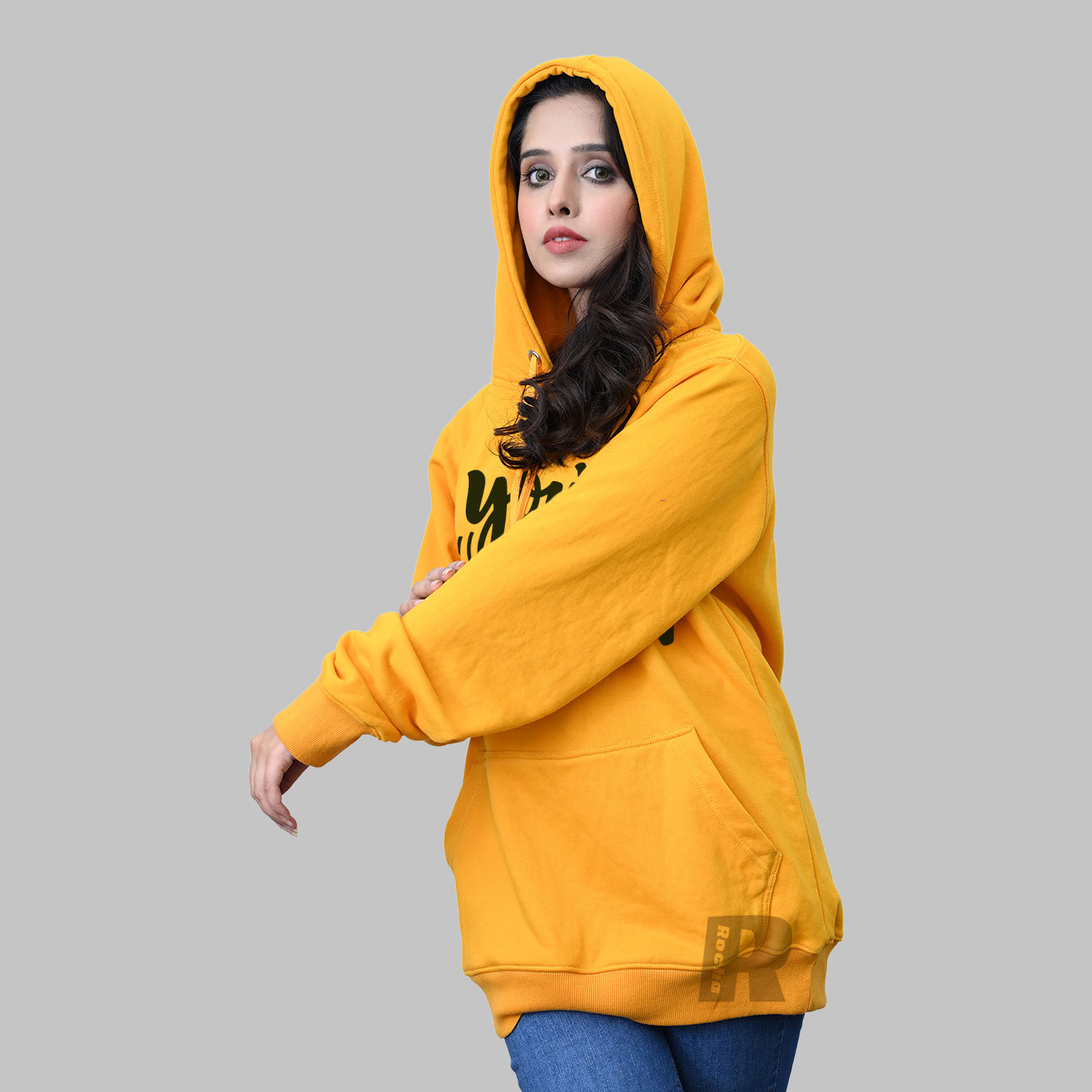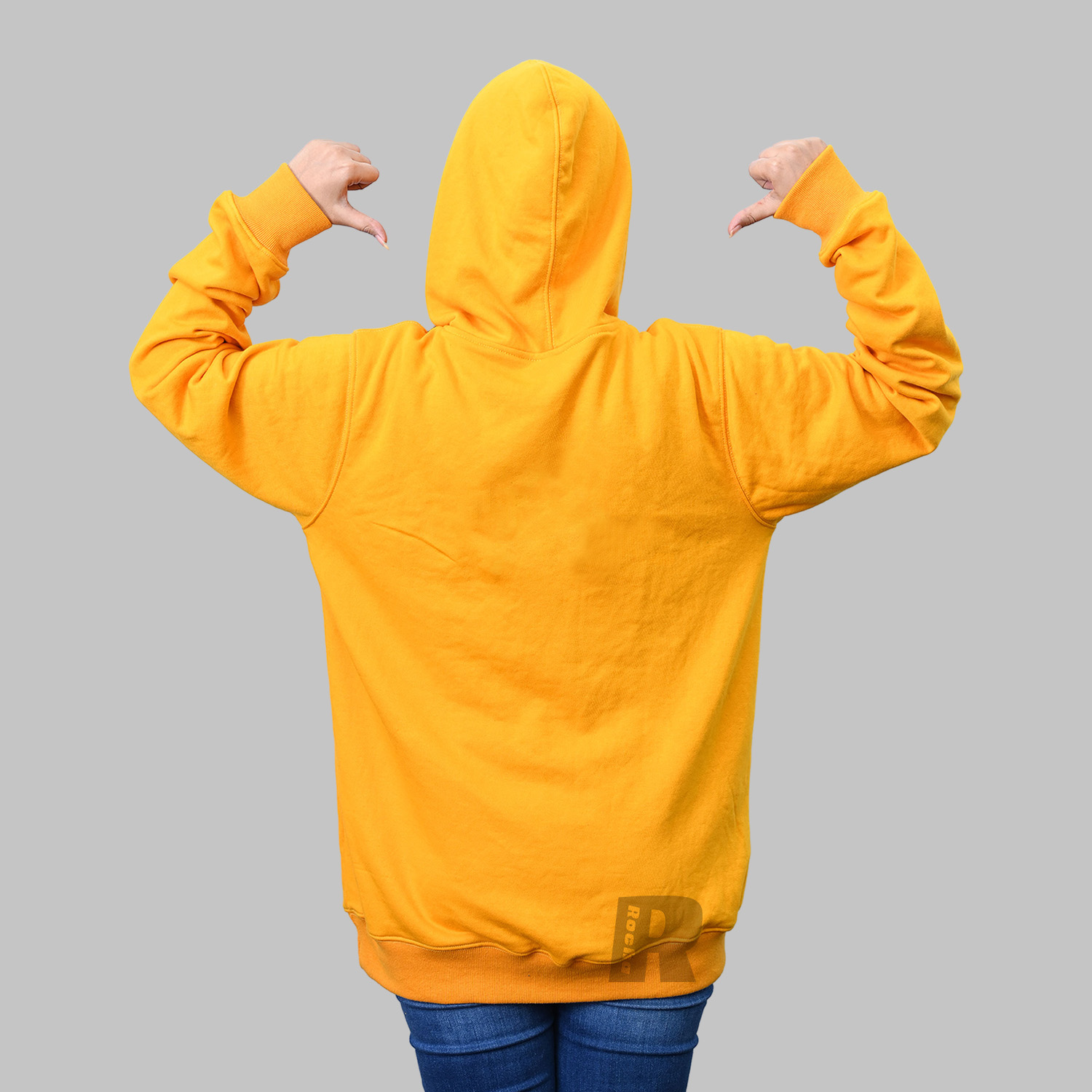 Custom Hoodies Made of Best Quality Cotton Fleece 320 GSM. This Custom Hoodie is made in Color Gold Cotton with two laces on the hood Gold Color.