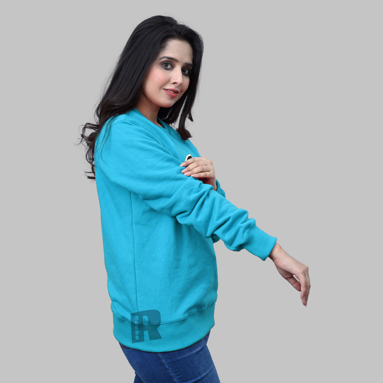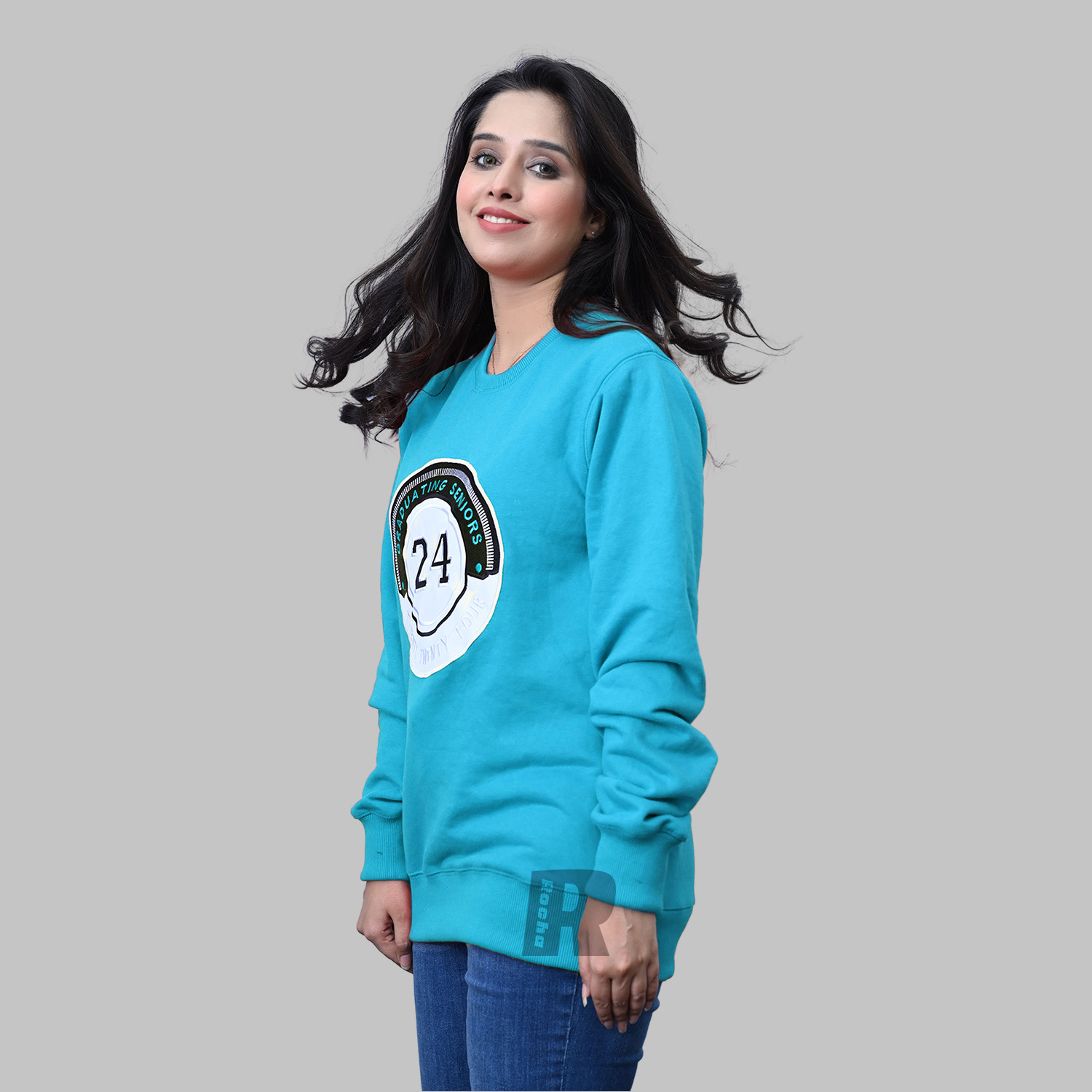 Custom Sweatshirts produced in superior Quality Cotton Fleece. Crewneck Sweatshirt is made in Color Columbia blue quality Cotton Fleece. We used best quality cotton polyester ribbing in cuff, neck and waistband.