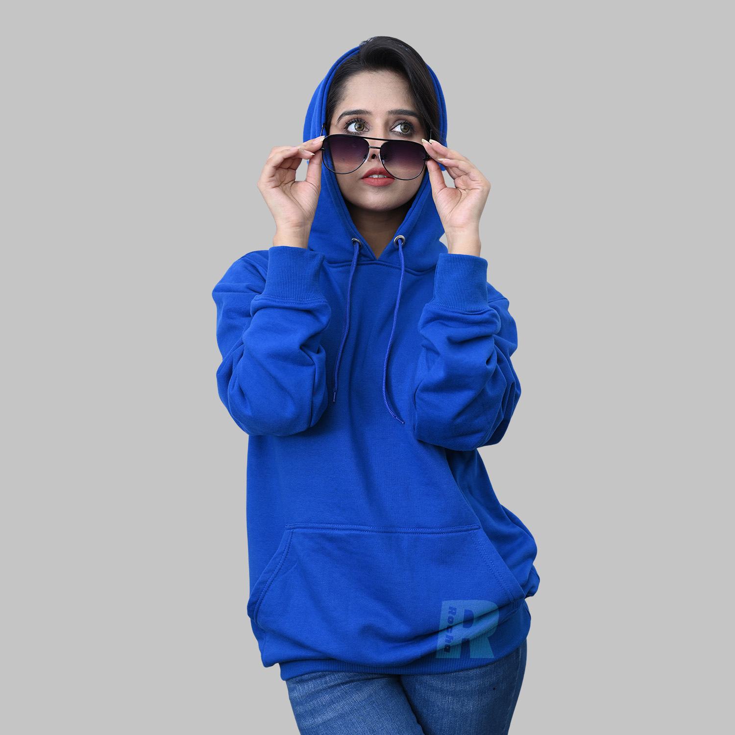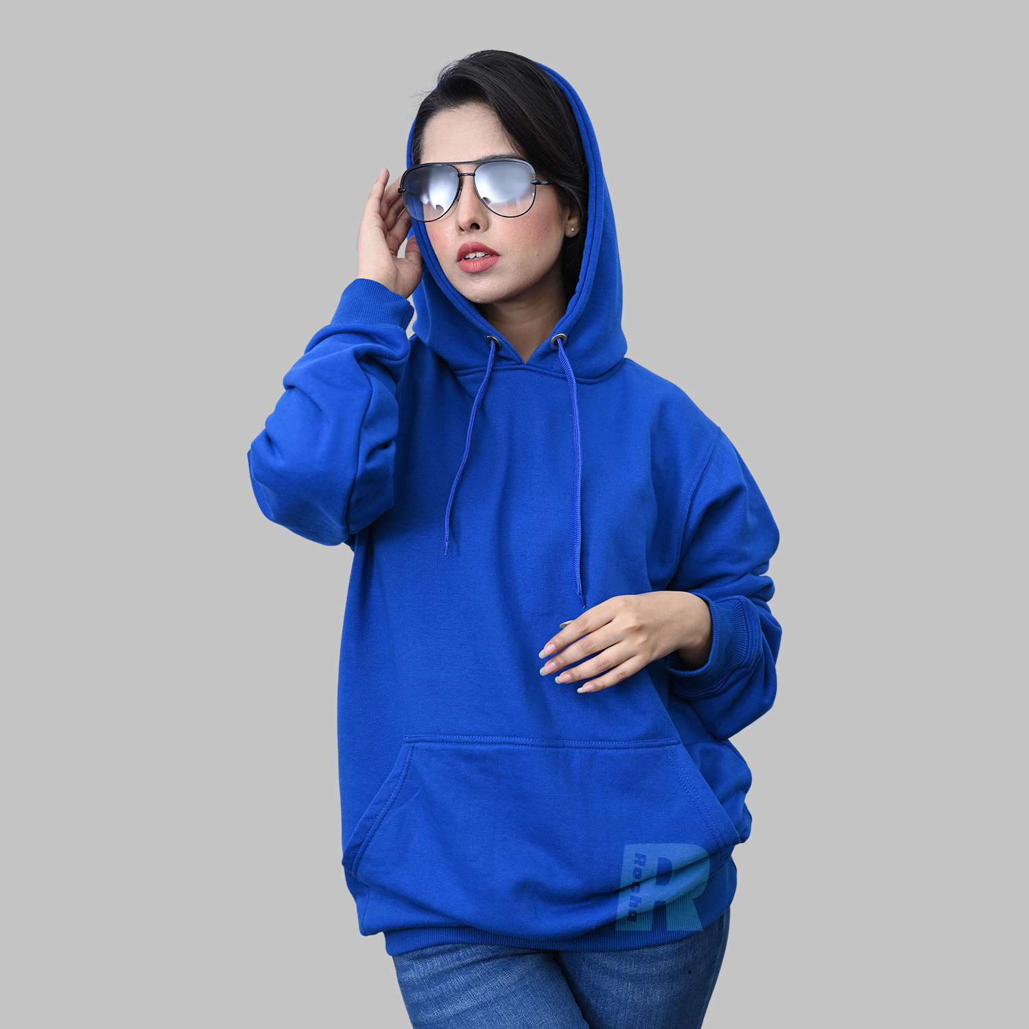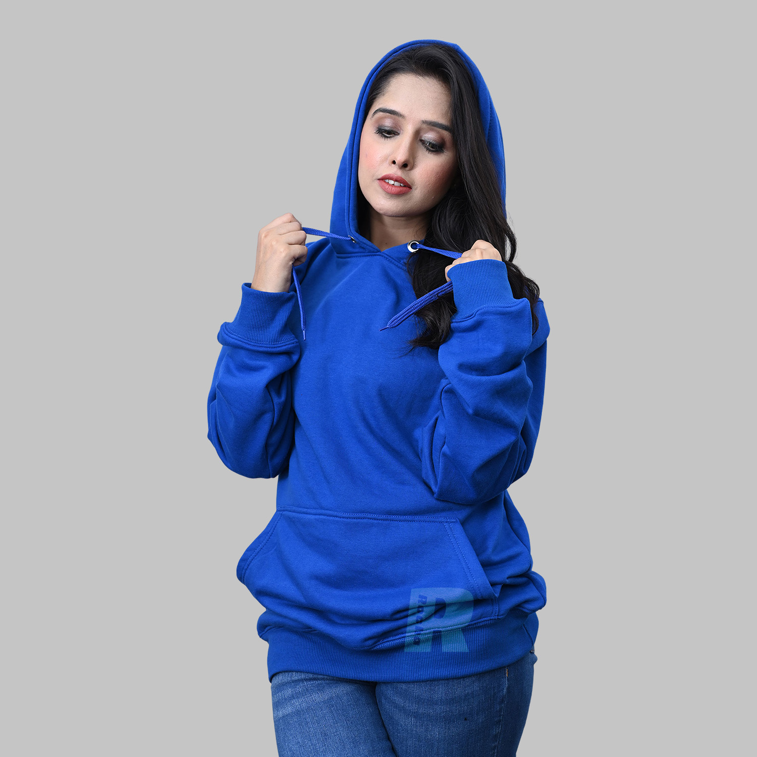 Pullover Hoodies Made of Best Quality Cotton Fleece 320 GSM. This Custom Hoodie is made in Color Blue Cotton with two laces on the hood Blue Color.