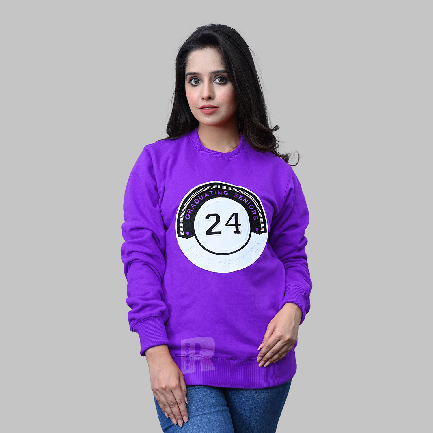 Schools sweatshirts produced in superior Quality Cotton Fleece. The Crewneck Sweatshirt is made in Color purple quality Cotton Fleece. We used the best quality cotton polyester ribbing in the cuff, neck, and waistband.