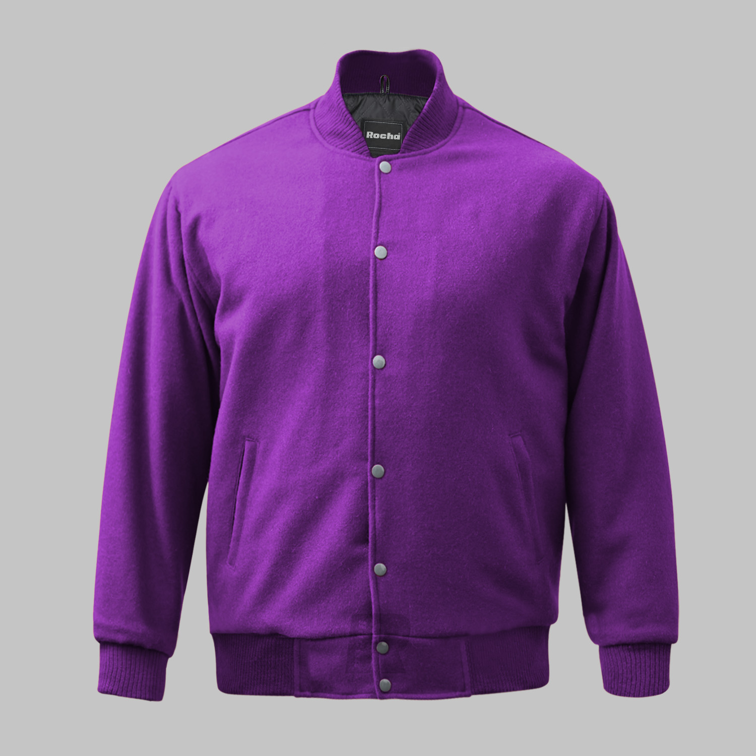 Senior jacket design made of Superior quality of Wool 24-oz body and Sleeves in Purple. This Custom Varsity Jacket with high quality 100% acrylic ribbing plain color Purple on collar, waist and cuffs.
