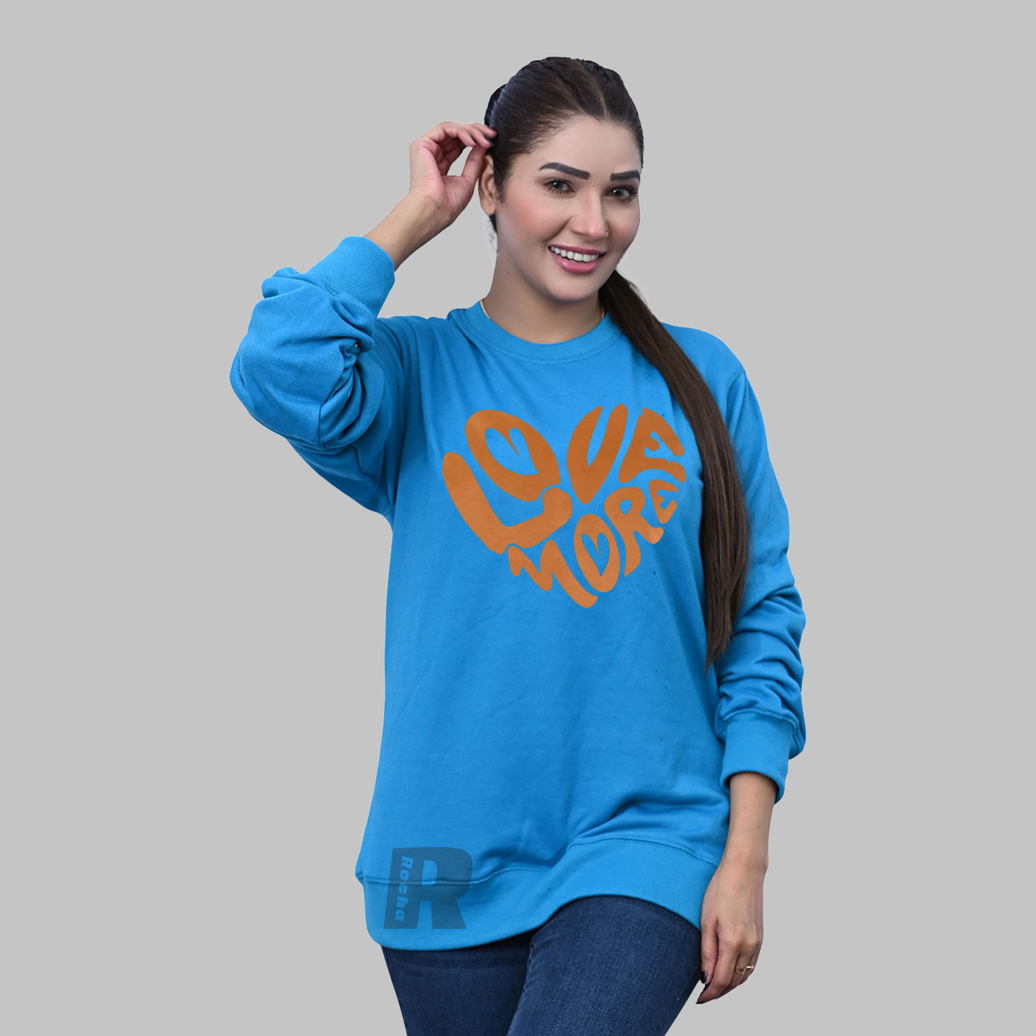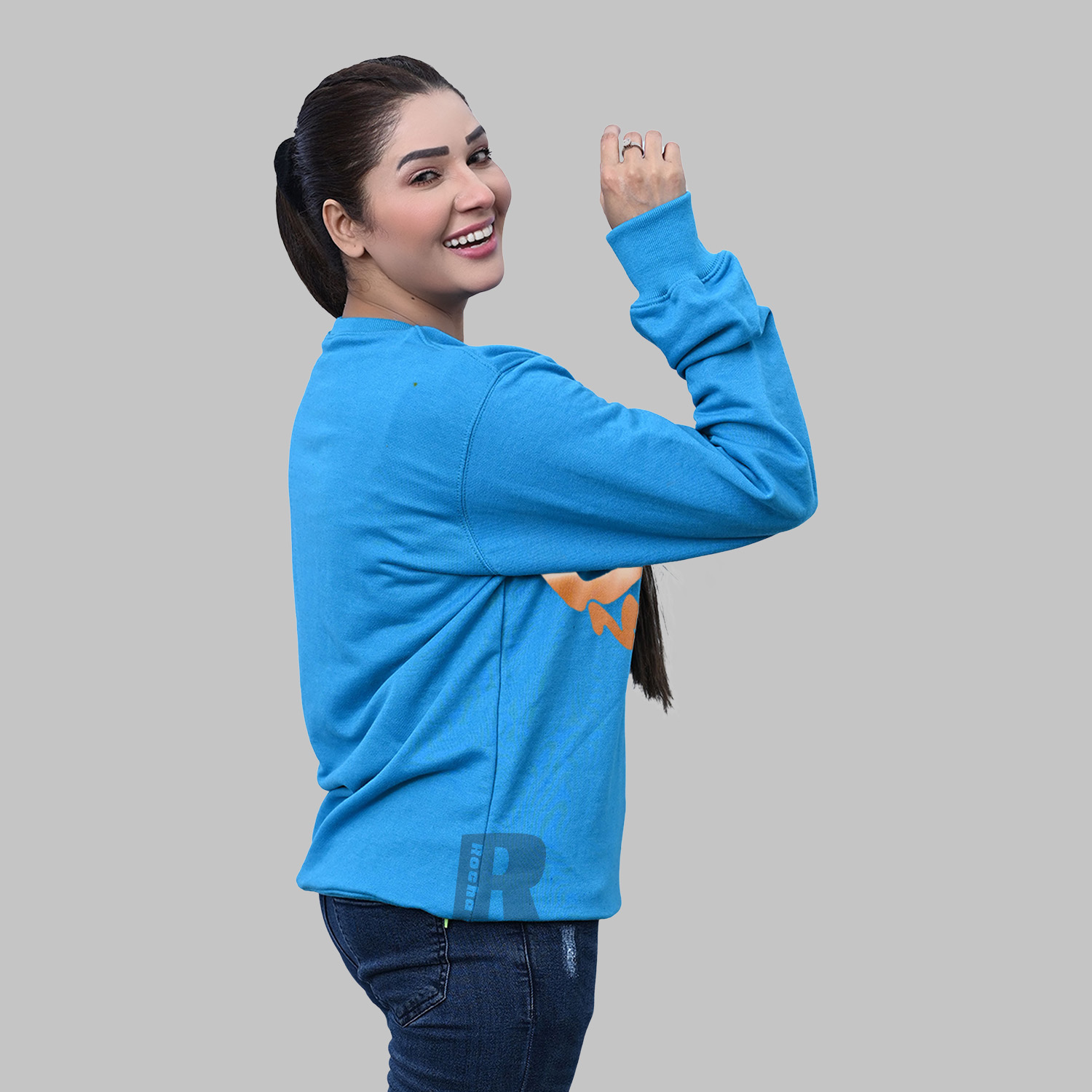 Sweatshirts for Women produced in superior Quality Cotton Fleece. Crewneck Sweatshirt is made in Color Columbia blue quality Cotton Fleece. We used the best quality cotton polyester ribbing in the cuff, neck, and waistband.