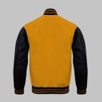 Varsity Jackets Gentlemen made of Superior quality of Wool 24-oz body in Brown and Genuine Cowhide Leather full Grain in Black. This Custom Varsity Jacket with high quality 100% acrylic ribbing base color Black and double stripe Brown on collar, waist and cuffs.