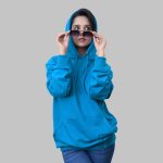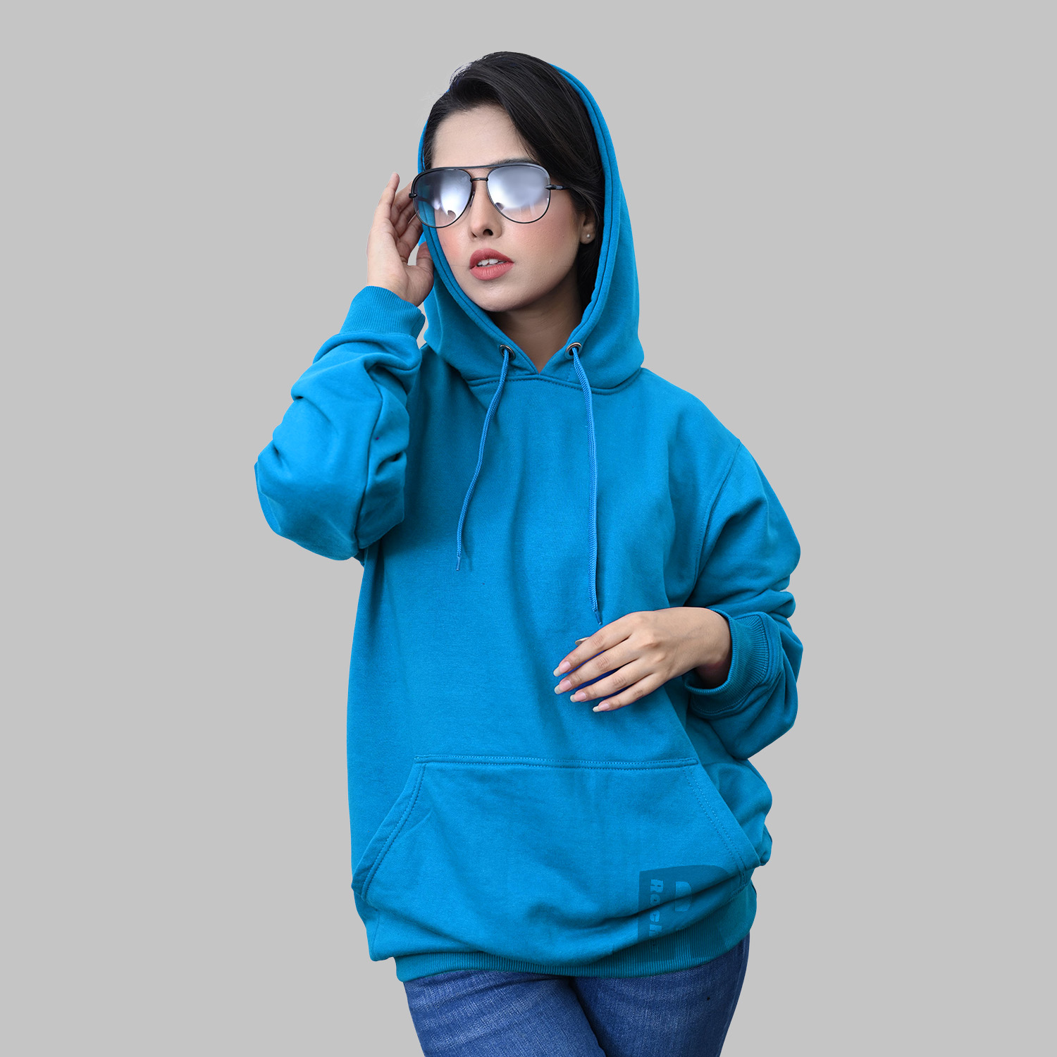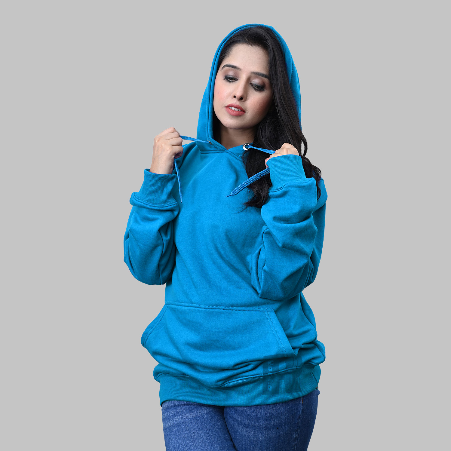 Women Hoodies Made of Best Quality Cotton Fleece 320 GSM. This Custom Hoodie is made in Color Columbia blue Cotton with two laces on the hood Columbia blue Color.