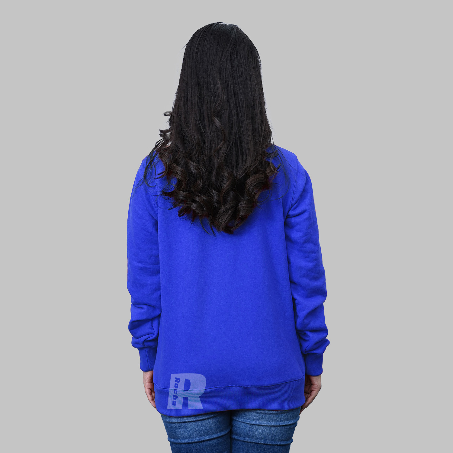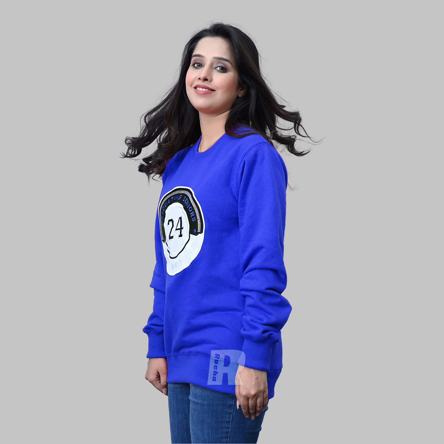 Women Sweatshirts produced in superior Quality Cotton Fleece. Crewneck Sweatshirt is made in Color blue quality Cotton Fleece. We used the best quality cotton polyester ribbing in the cuff, neck, and waistband.
